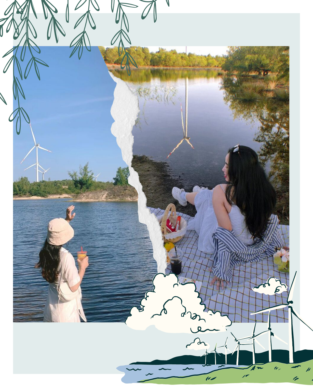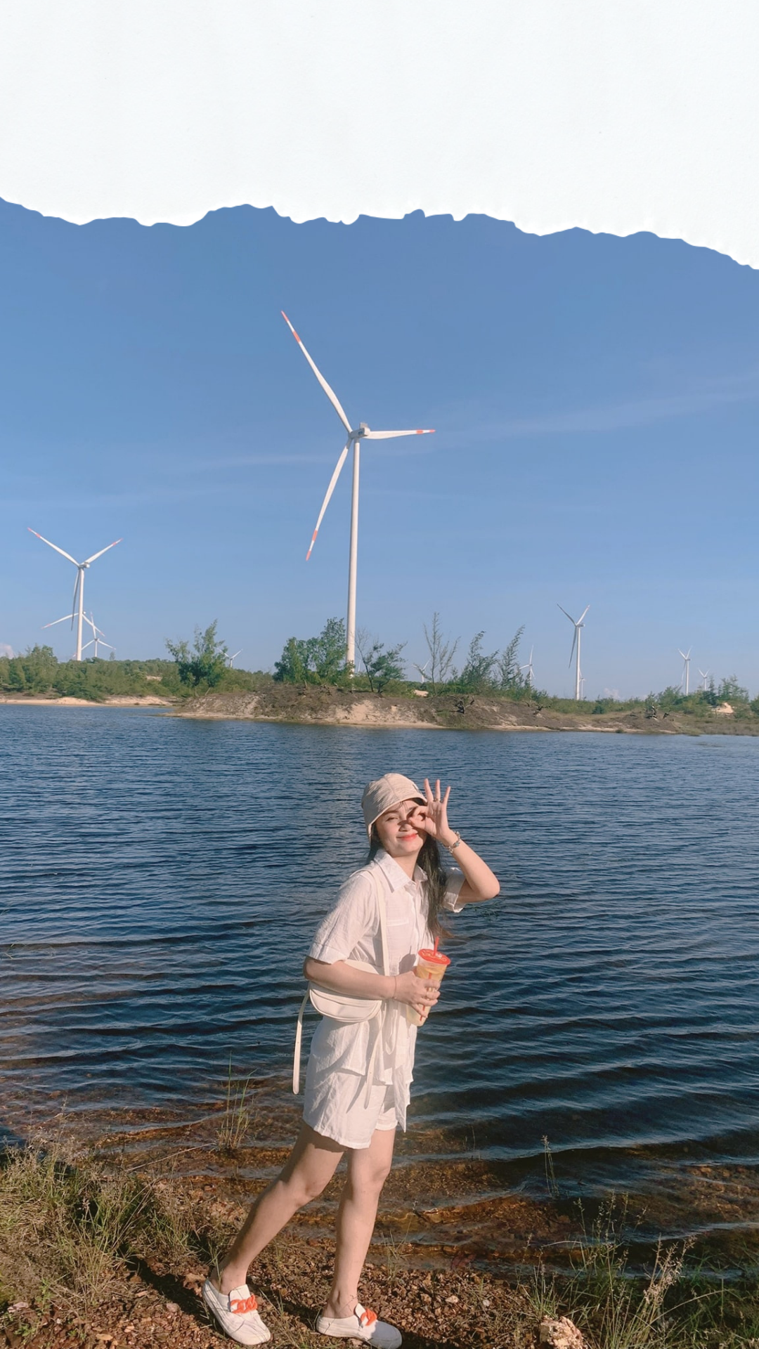 Cánh đồng điện gió với tổng 60 tua bin trụ cao 136m, cánh dài 74m, nếu quan sát từ xa với tầm nhìn bao quát bạn sẽ thấy giống hệt như những cối xay gió khổng lồ. Các trụ điện gió này nằm dọc bờ biển Quảng Bình, lấy nguồn năng lượng sạch để tạo ra nguyên liệu phục vụ đời sống con người.