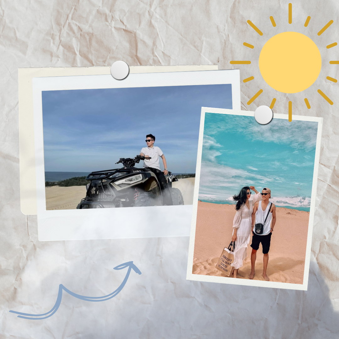 Những đồi cát trắng mịn trải dài như mê hoặc lấy cái nhìn của du khách. Cảm giác thảnh thơi giữa mây trời, luồn bàn chân xuống cát và cảm nhận sự nóng từ phía mặt trời tỏa xuống, hơi mát lạnh của cát mang lại thì mới thấy đã làm sao. Ngoài ra, khi bạn phóng tầm mắt ra phía xa còn có thể nhìn thấy biển. Đứng tại đồi cát Quang Phú, một trong những hoạt động không thể bỏ qua chính là đón hoàng hôn hay check - in lúc bình minh rất lãng mạn.
