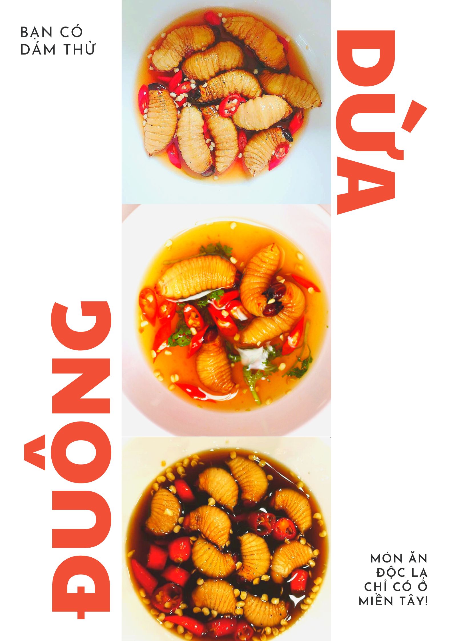 Nếu bạn không biết thì, đây chính là một trong những món ăn hấp dẫn nhất miền Tây mà du khách nhất định phải thử - đuông dừa tắm mắm ớt. Những chú đuông dừa tươi rói béo múp, ngọ nguậy uốn éo bên trong chén nước mắm ớt đậm đà, đã trở thành hình ảnh hấp dẫn mà bất cứ thực khách nào cũng thích thú đón nhận.