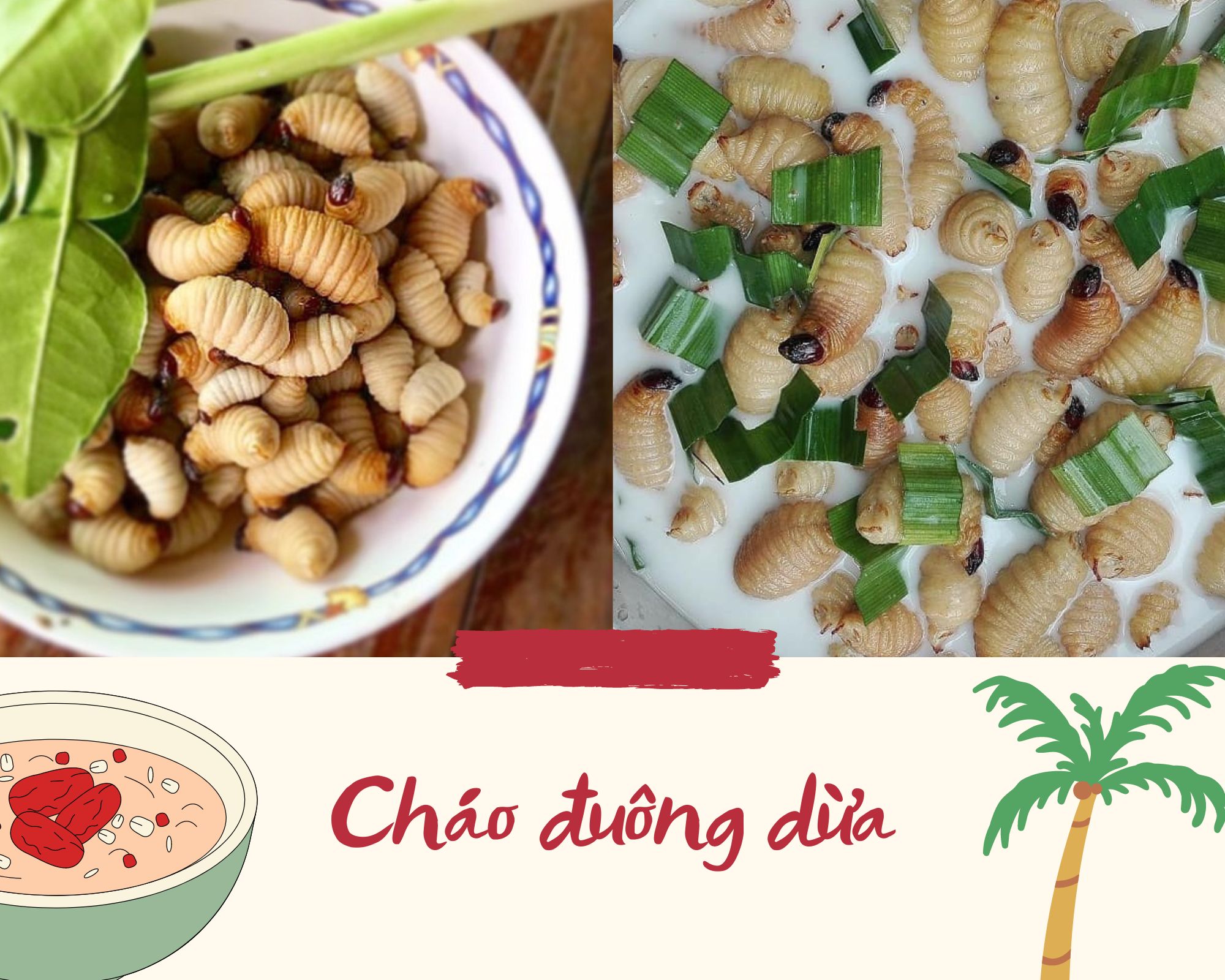 Nếu bạn chưa biết thì ngoài những món ngon nức tiếng thơm ngon, thì cháo đuông dừa cũng là một gợi ý mới mẻ nữa dành cho những ai yêu thích văn hóa ẩm thực miền Tây. Vẫn sử dụng nguyên liệu đơn giản như chính tính cách của người dân như thịt lợn, gạo, nước cốt dừa, hành lá và gia vị, thế mà người dân nơi đây đã viết lên cột mốc ấn tượng mới trên bản đồ ẩm thực miền Tây với món cháo đuông dừa béo ngọt vô cùng.